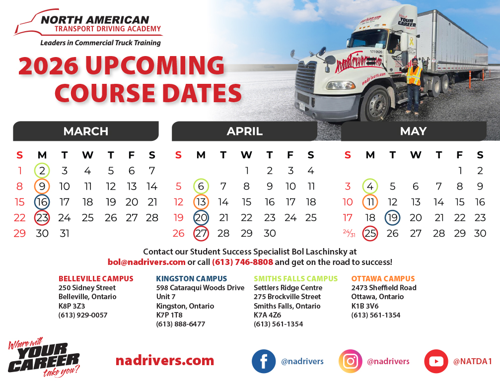 Please call Bo at (613) 561-4675 or click Contact to email and request next available dates for all licence classes